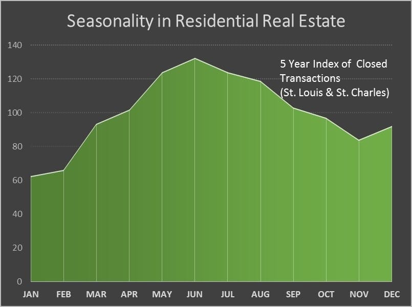 Yes. There is seasonality in residential real estate and the time is NOW. We are at the peak of the real estate selling season. May, June, and July are the peak months in our St. Louis metropolitan area. I looked at closed transactions over the past five years and discovered that June has 32% more closed sales than an average month. Remember, a closed sale typically occurs 40-60 days after an offer has been accepted, which means contracts written in mid-May produce the closed sales at the end of June, and contracts written in June close in late July.