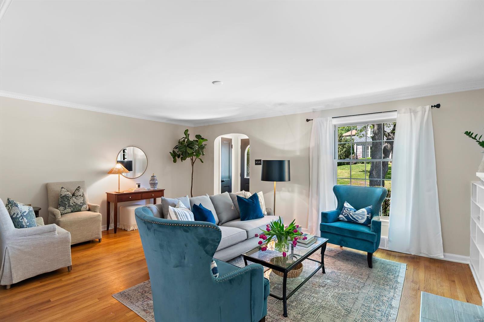 This picture perfect 3 bedroom Glendale home is sure to steal your heart! Freshly painted in neutral tones; the sunny, open spaces of the living & dining areas with hardwood floors make this a great home for entertaining. A delightful sunroom off the dining room was redone 2019. The lovely kitchen (new in 2016) has stainless appliances, custom cabinetry, quartz countertops & opens to a refurbished deck overlooking the yard. The full bath (2024) has a newer vanity with double sinks.