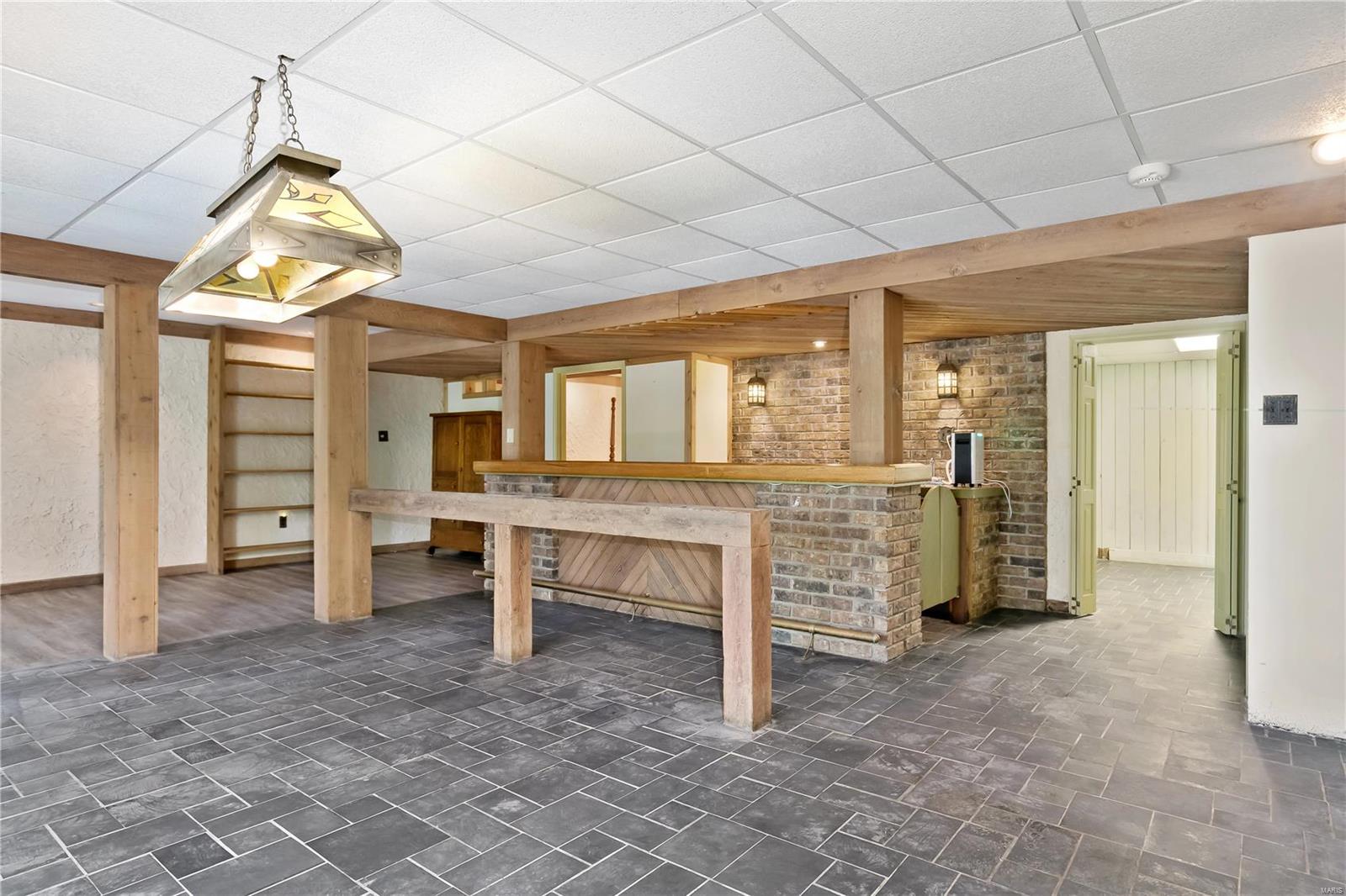 Calling all Mid-Century Modern Lovers! Enjoy over 4000 sq ft of living space in this Frank Lloyd Wright-inspired home on just over an acre overlooking the 6th fairway of Sunset CC! All of this in Lindbergh Schools! This multi-level home is tucked back in the private setting of the Forest Ridge subdivision. Large foyer connected to spacious office/loft, all overlooking the DR & family rooms below. Open staircase leads to main level w family/great room w floor-to-ceiling modern windows overlooking the wooded backyard, updated eat-in kitchen, DR with walkout French doors to enclosed garden & a vintage half bath. A few steps up to the BR area: Primary en suite BR w 4 more large BR's and a full hallway bath. Take stairs down to a large LL walkout Rec Room, separate guest/bonus room with half bath en suite, vintage kitchenette, and laundry room. The space is there! Bring your imagination to life in this rare find in St. Louis! In-ground pool, 2 patios, 2 car garage w workshop & storage loft.